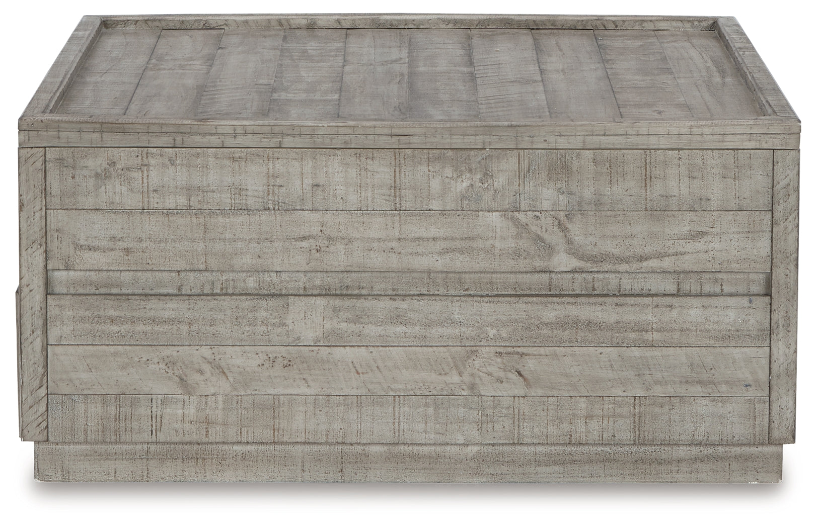 With a contemporary silhouette and downtown flair, this coffee table seamlessly fits in with existing modern decor. Its weathered gray, clean-lined profile offers an urban sophistication. This chic coffee table also features a picture frame-style tabletop with lift top design delivering a statement rich with character.