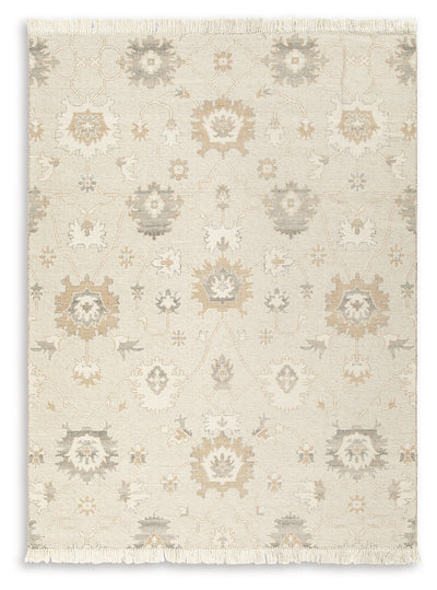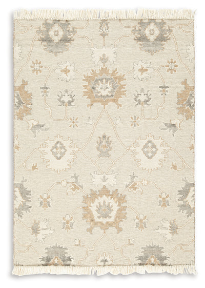 Bring modern life into balance with the rhythms and beauty of nature. This area rug has the vintage look of an heirloom. Blooming with graceful florals in neutral tones and surrounded by fringe edging, it adds style to any lounge space.